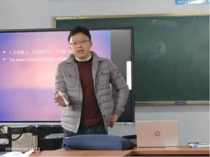 为了提高教师的教学能力,2024年4月2日下午,我院英汉翻译基础教学团队在萃文楼212组织集体备课活动。本次活动旨在解决教学中遇到的问题、分享优秀教师的教学经验及课堂设计、加强课堂互动、打造高效生动的翻译课堂。我院院长潘海英教授和主管本科教学副院长王守宏教授应邀参加了活动。此次备课活动由教学团队负责人丁丽蓉教授主持。
