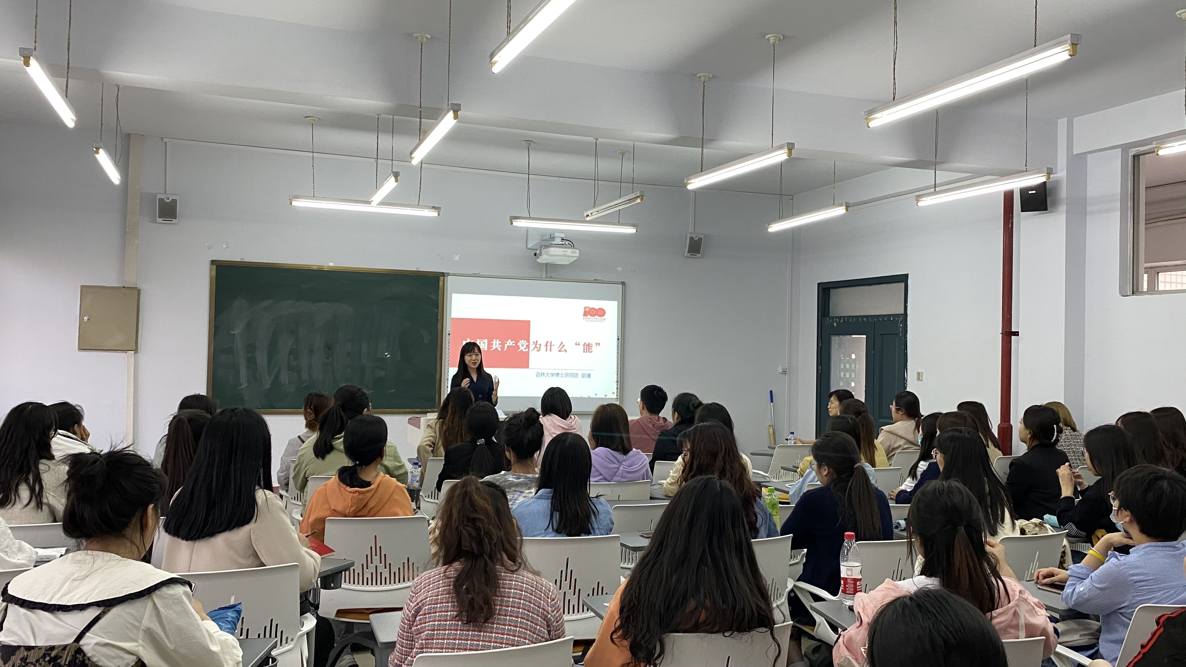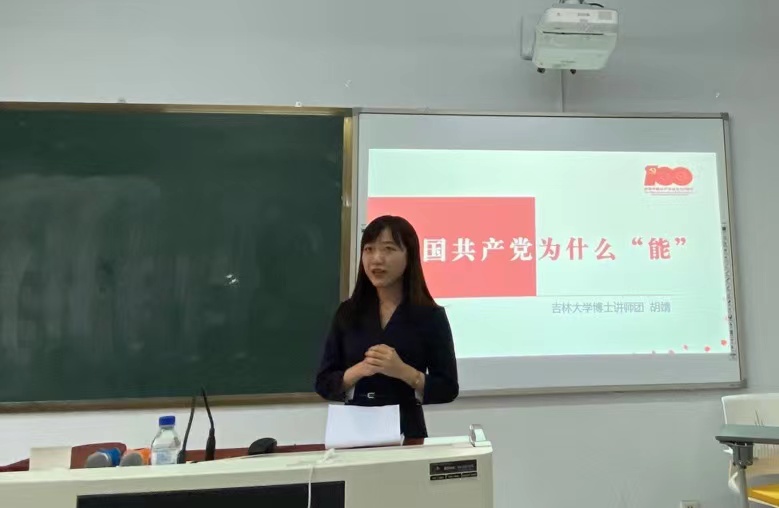 为庆祝中国共产党建党一百周年,进一步让广大研究生在党史学习教育中“明理、增信、崇德、力行”,5241830,在经信楼D401教室,吉林大学博士讲师团讲师胡靖为乐鱼最新网页登录学生三个党支部的全体中共党员、发展对象和入党积极分子上了一堂主题为“中国共产党为什么‘能’”的党史课,本次活动由辅导员曾媛主持。