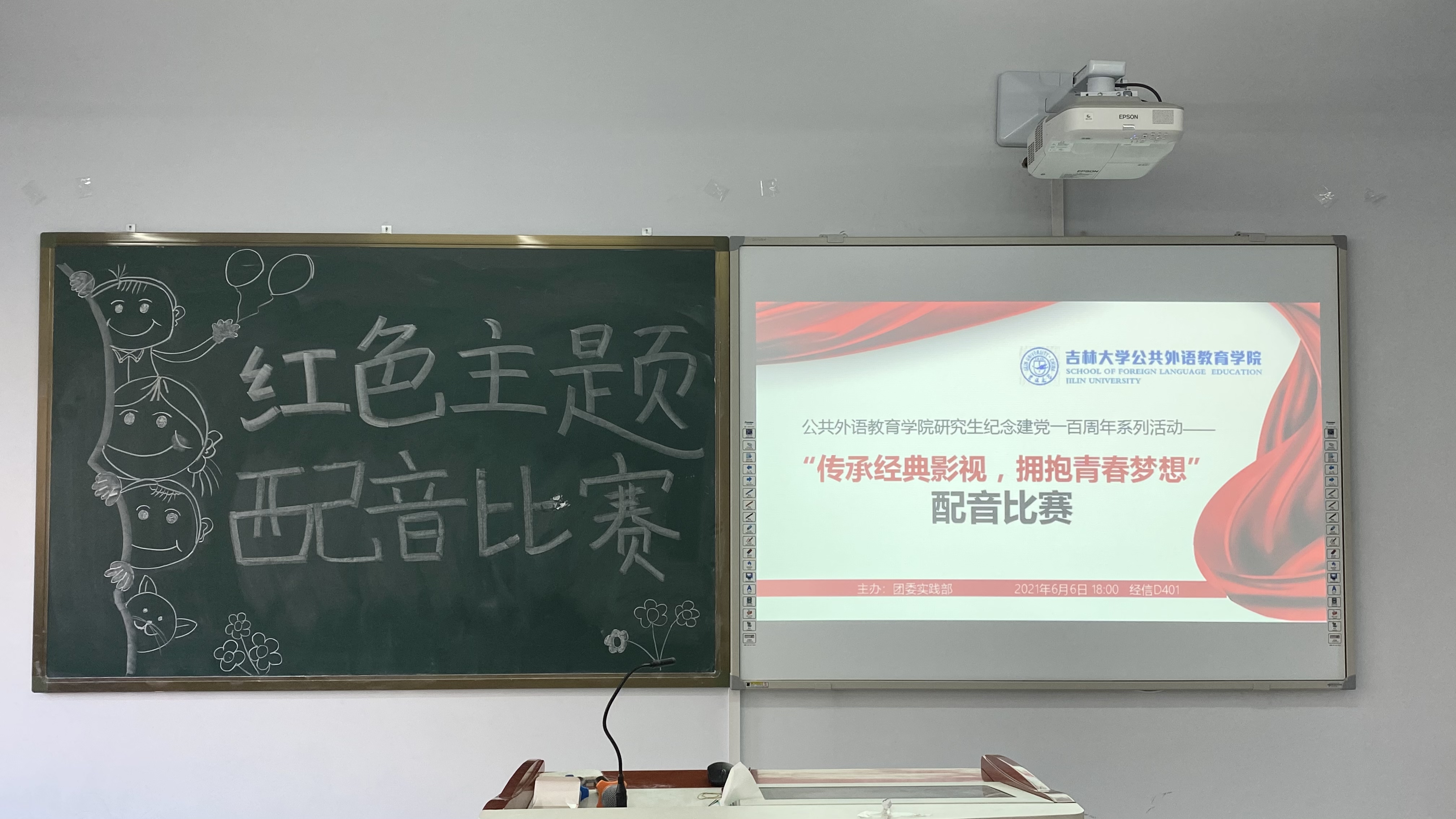 为纪念党的100周年华诞,传承红色精神,引导青年学生自觉践行社会主义核心价值观,体现学院特色及学子风貌,做好青年学生多方面发展自我能力建设,202166日晚上6点,公共外语教育学院团委于经信楼D401教室组织了以 “传承影视经典,拥抱青春梦想”为主题的配音大赛。团委副书记梁慧、实践部部长顾晓月、宣传部部长王颖、党员代表尤天来、研会学术部部长季云飞担任此次配音大赛的评委。2019级,2020级研究生共九支团队和个人参加了此次比赛,以汉、英、日三种语言现场演绎影视经典片段,将专业学习深度融入于党史学习教育。