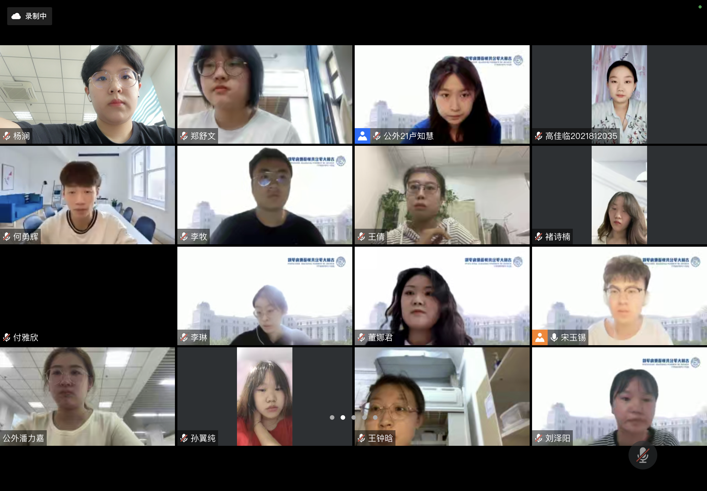 为进一步了解研究生暑假期间的思想动态,更好地做好新学期研究生思想政治教育工作,2022年9月15日上午9点,公共外语教育学院组织各年级硕士、博士研究生参加线上思想政治教育座谈会。本次座谈会由2021级宋玉锡同学主持,辅导员曾媛老师和2020级、2021级硕博士研究生参加。