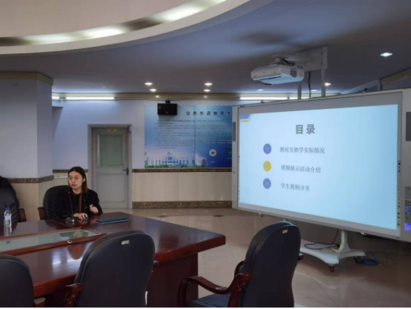 会议伊始吕美嘉老师首先说明本次活动的目标与任务,然后邀请三位优秀教师分别从助力学生提高科研素养、使用Video presentation高效改进听说教学和测评AI工具评阅作文的可信度入三方面手,从理论到实践分享了她们的教学活动设计、实施、反思过程。