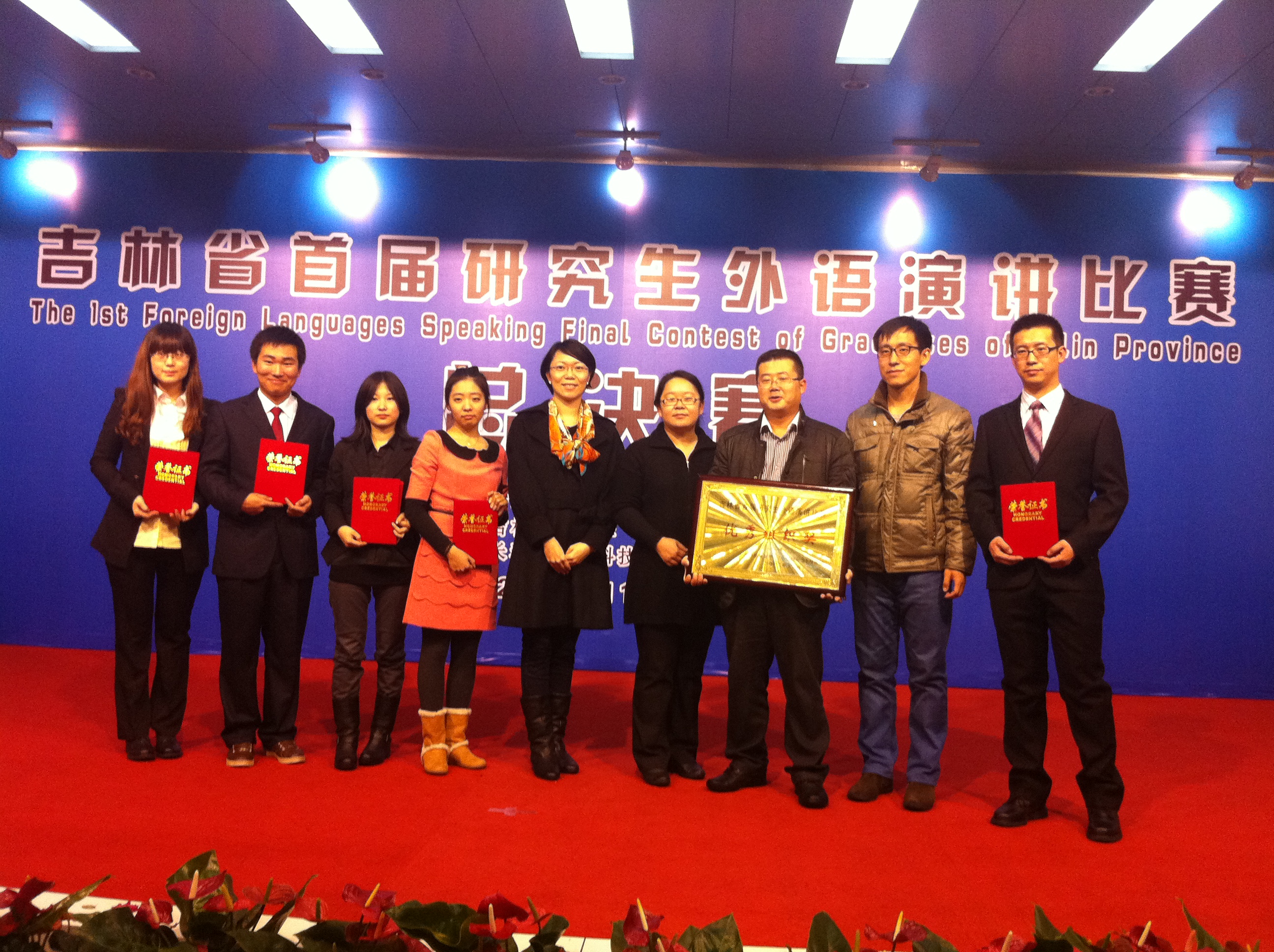 我校共派出9名选手,与来自东北师范大学、吉林农业大学、吉林师范大学、长春理工大学、吉林财经大学等13所高校的38名选手同台竞技。上午8点30分,省教育厅领导、《中国研究生》杂志社领导及吉林农业大学领导为大赛致开幕词,随后比赛正式拉开帷幕。 专业组决赛分即席演讲和现场问答两部分。我校选手以流利的口语、独特的见解及机智的回答征服了在场评委。2012级翻译硕士张倩同学以全场最高分91.34分的成绩获特等奖,2011级语言学硕士李伟同学获一等奖。非专业组决赛分自命题演讲和即席演讲两部分。2012级文学院王厚萱同学在激烈的争夺中表现出色,以第一名的成绩获特等奖。2011级机械学院周明星同学、2011级汽车工程学院赵帅同学获二等奖。2012级语言学硕士逄红等4名同学也以优秀的成绩和良好的表现荣获纪念奖。公共外语教育学院院长战菊教授被评为优秀指导教师,我校荣获优秀组织奖。 赛后,来自东北师范大学的 本项赛事受到我校研究生院有关领导的高度重视并给予了极大的支持,选手们在比赛中的突出表现集中体现了我校研究生外语教育的整体水平。本次大赛为更好地营造我校研究生外语教育氛围,建设研究生校园外语生活,深入实施研究生创新计划,全面提高研究生培养质量进行了更多积极有益的探索。
