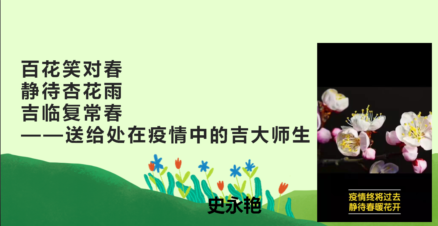 此次活动为同学们提供了自我展示的平台和勇敢表达爱的机会, 家书虽短,情意绵长。同学们以一份份独创的三行家书,汇聚春天般的暖阳,照进心间。相信疫情终将消散,长春定复往常春!