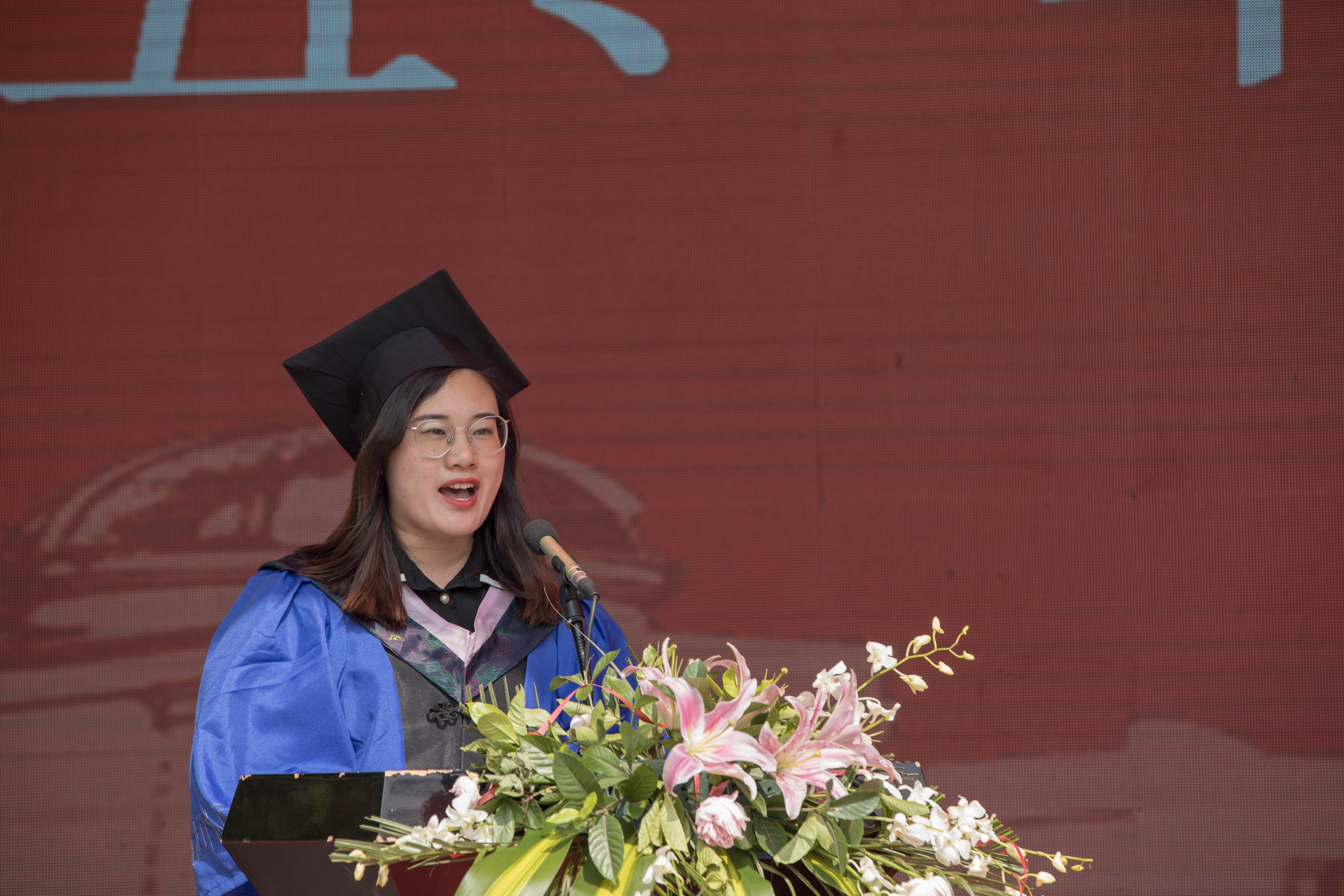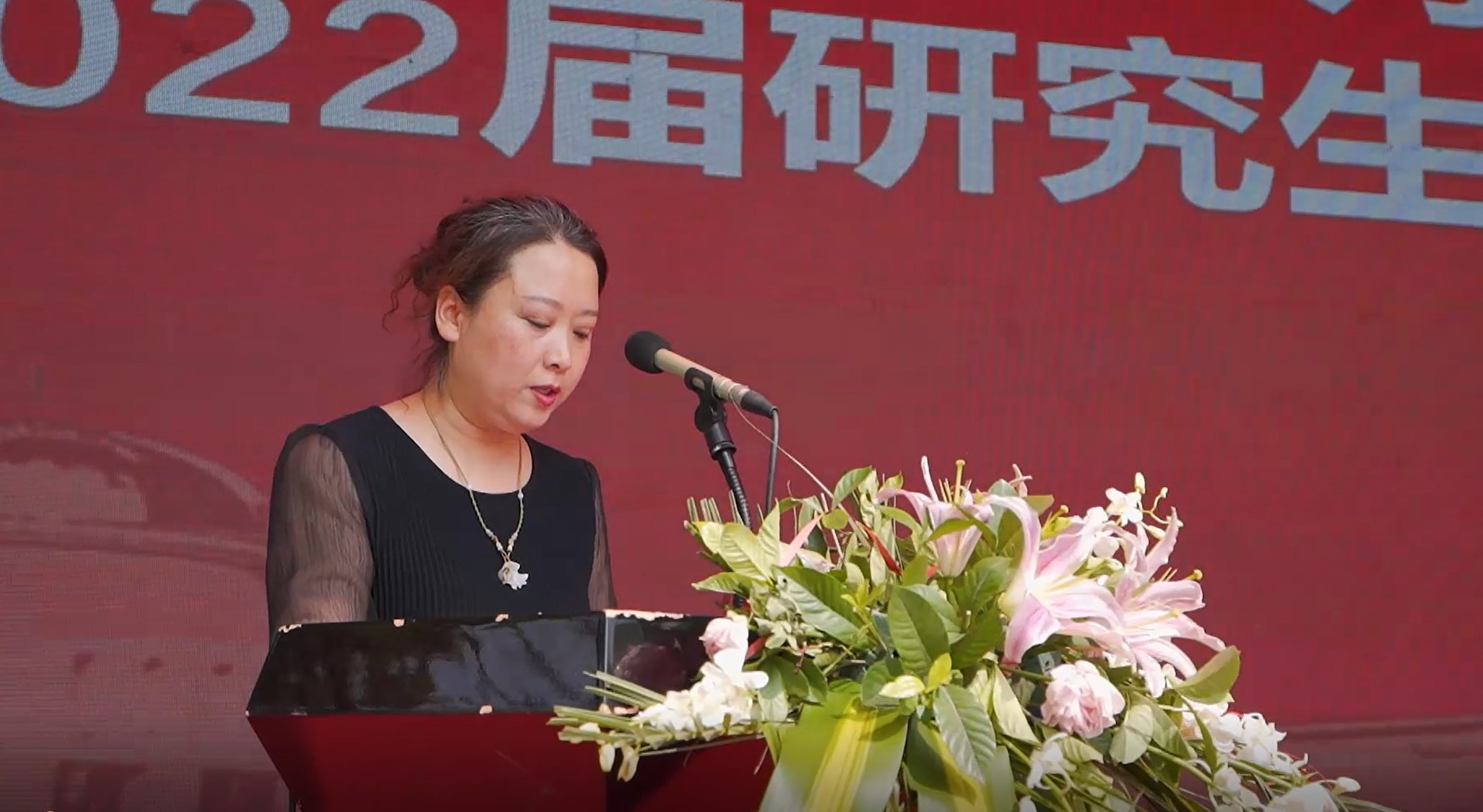 研究生导师代表韩松教授发言,她结合自己的研究生生涯,鼓励同学们在挫折中成长,在曲折中强健;逆境中不气馁,挫折时不放弃,成功时不自傲;牢记吉林大学“求实创新,励志图强”的校训,不断努力前行。