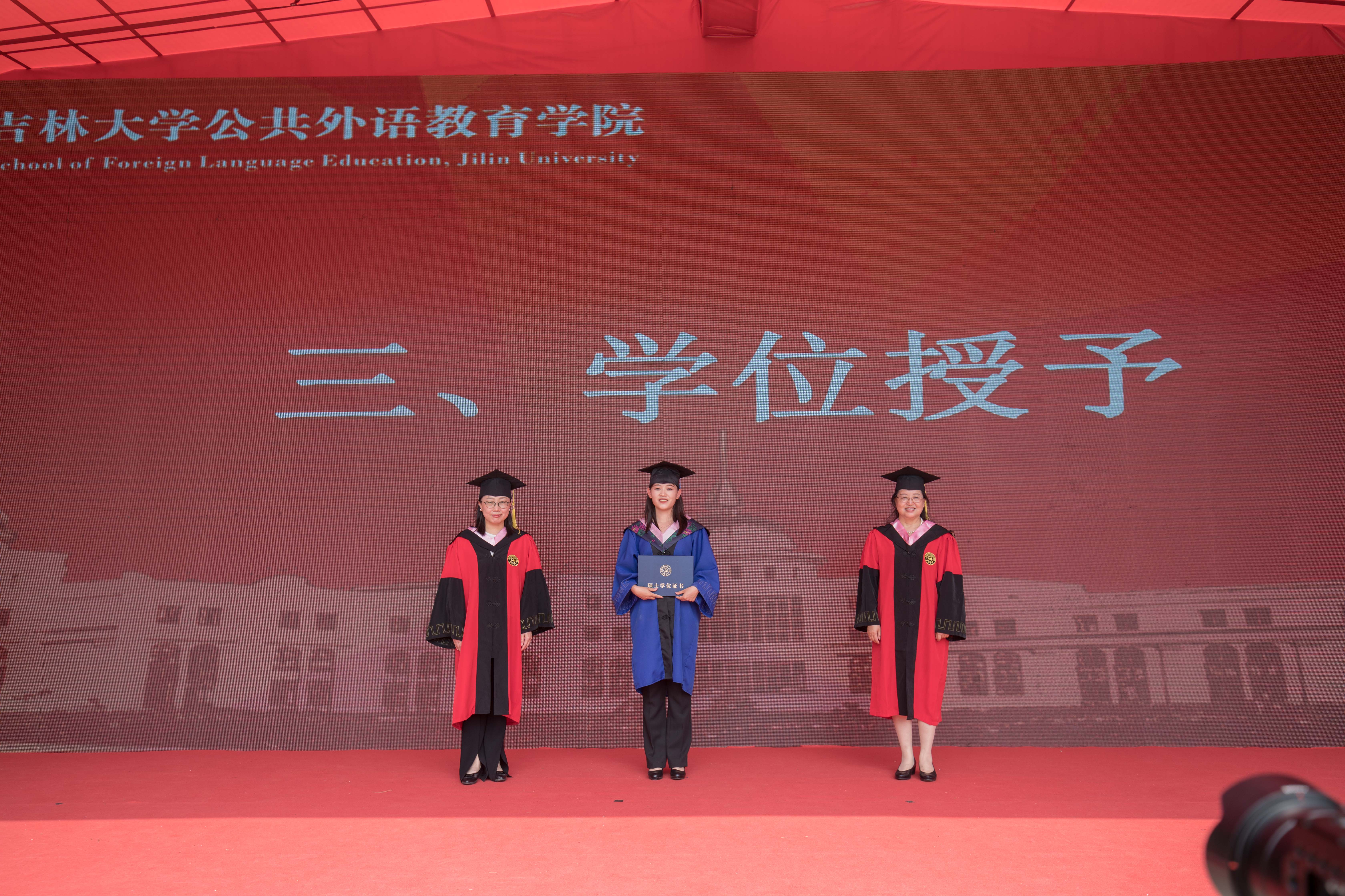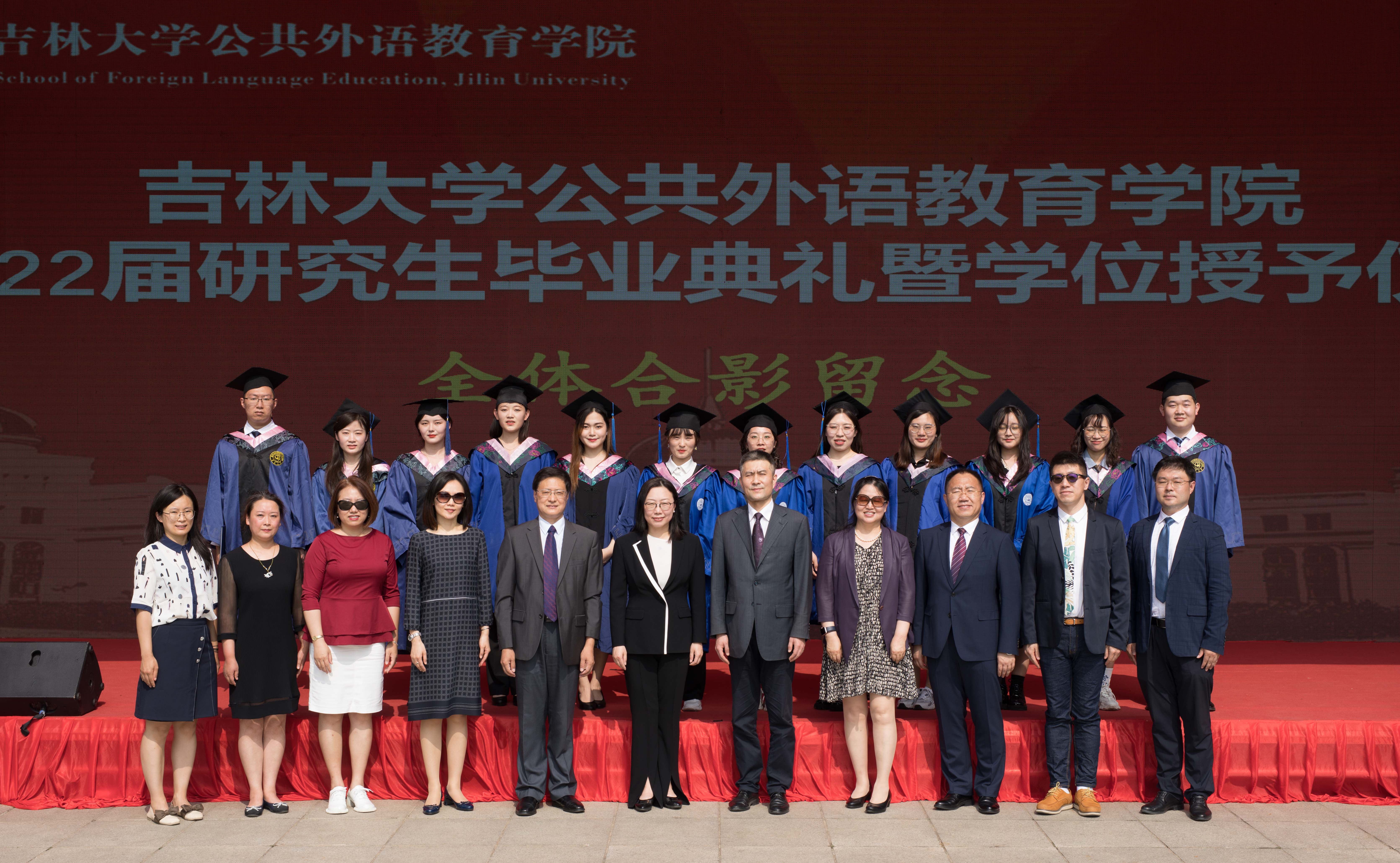 2022年6月19日下午2点,公共外语教育学院2022届研究生毕业典礼暨学位授予仪式在吉林大学中心校区五月花广场隆重举行。公共外语教育学院党委书记贺强、院长潘海英及学院全体领导班子成员、学院学位委员会主任战菊教授、研究生导师代表韩松教授等出席典礼,全体毕业研究生通过线上线下结合的方式参加典礼。典礼由学院党委副书记徐杰主持。