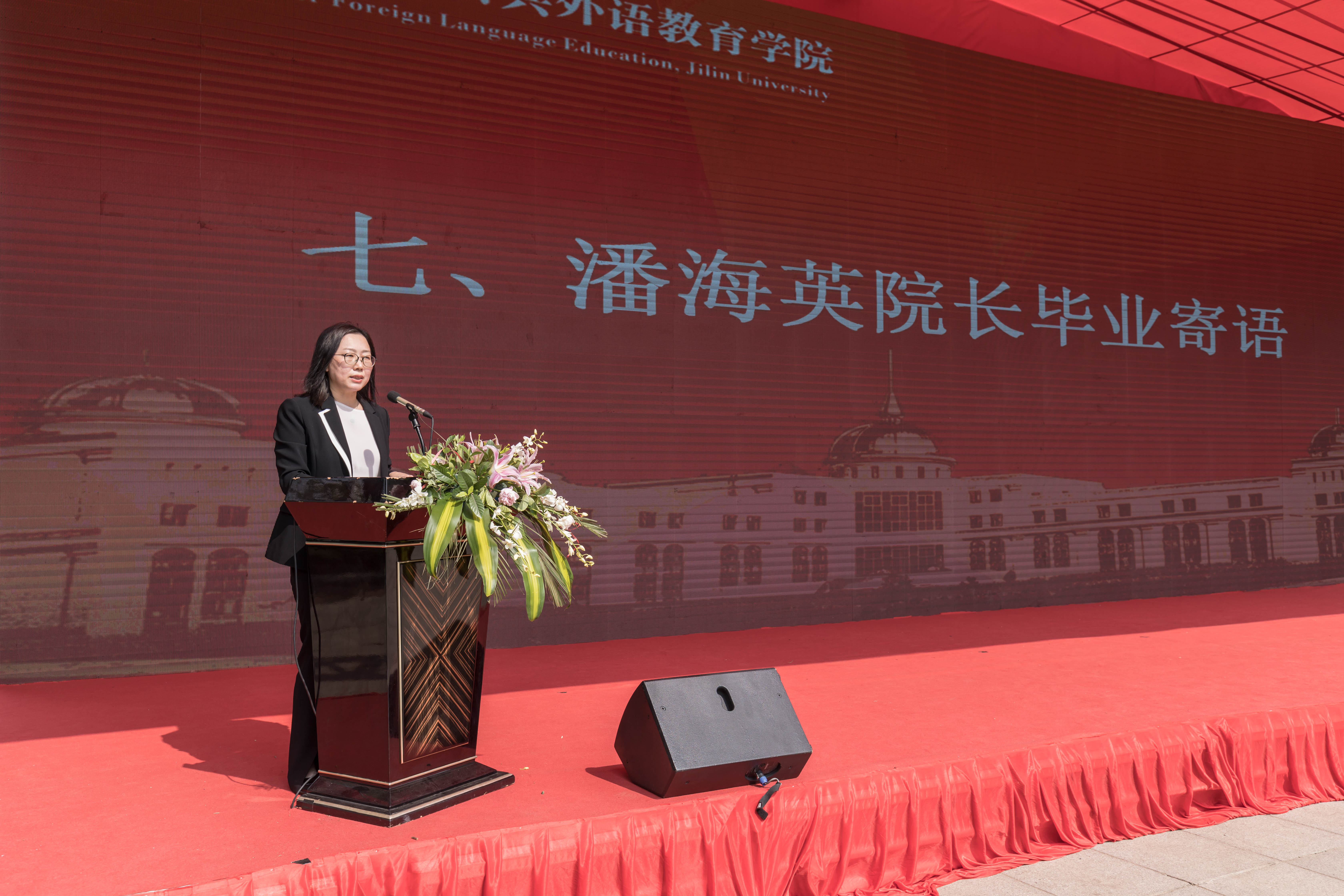 院长潘海英发表题为《忠于热爱、勤于思考——成就“公共”“外语”“教育”事业》的毕业寄语。她回顾了同学们“与国家同命运、与学校心连心、与学院同发展”的三年吉大求学之旅;送给了毕业生“涵养公共精神,厚植家国情怀”、“打磨外语专业,坚持独立思考”、“投身教育事业,不忘心中热爱”三句箴言,希望同学们砥砺前行,成就“公共”“外语”“教育”事业。