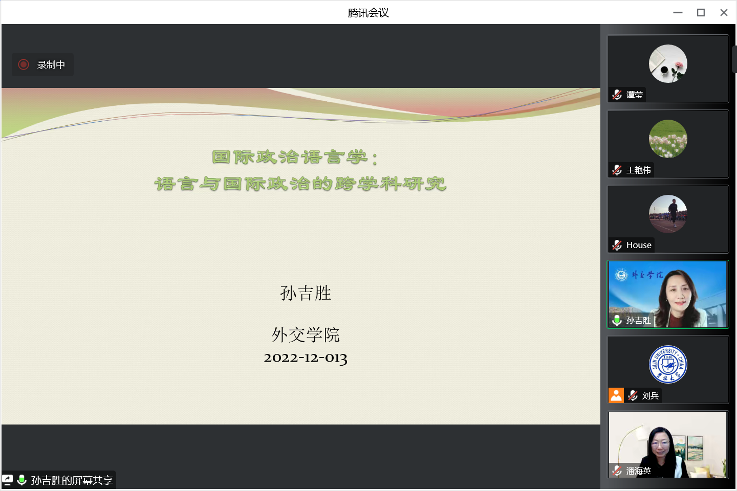应乐鱼最新网页登录邀请,外交学院副院长、博士生导师孙吉胜教授,于12月13日在线进行了专题学术报告。讲座由院长潘海英教授主持,校内外广大师生参加了此次讲座。