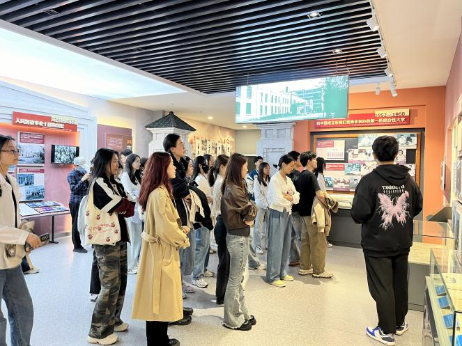 校史馆内,同学们在讲解员的引导下,深入了解了学校的历史沿革、杰出校友以及学校在各个时期取得的辉煌成就。墙上的一幅幅老照片、展柜中的一件件珍贵文物,无不诉说着学校悠久的历史和深厚的文化底蕴。同学们认真聆听,不时拍照留念。此次活动不仅丰富了同学们的校园生活,也激发了他们对学校文化的热爱和对未来的憧憬。