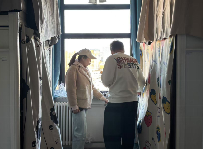 此次检查重点关注宿舍卫生、用电安全以及供暖设施等方面。在走寝过程中,林老师与学生们热情互动、亲切交谈,主动询问学生们的生活状况与日常需求。鉴于近期天气日渐转凉,林老师特别关注宿舍的供暖情况,贴心提醒同学们及时添加衣物,预防感冒。