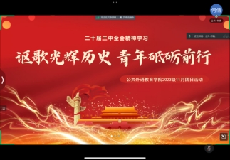 为深入学习和讨论党的二十届三中全会精神,增强奋斗意识,厚植爱国情怀,公共外语教育学院2023级、2024级团支部分别于2024年11月22日晚和11月26日晚开展了以“讴歌光辉历史,青年砥砺前行——二十届三中全会精神学习”为主题的团日活动,此次团日活动由各支部团支书主持、支部团员参与。活动主要围绕“追溯改革之路,照亮时代航向”、“聚焦三中全会,提取全会重点”、“领悟会议精神,青年着眼未来”、“做奋进的中国青年”四个方面进行。